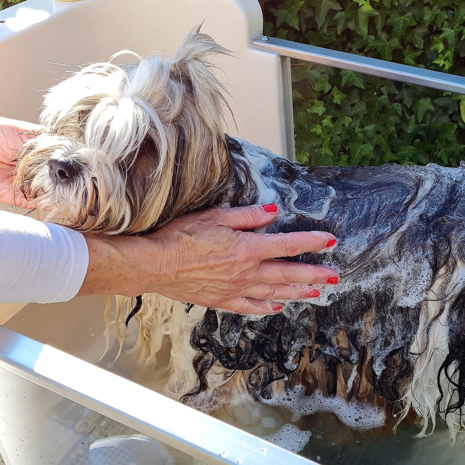 Durch die natürlichen Inhaltsstoffe unserer Shampoos wird die natürliche Fellfarbe verstärkt. Weißes Fell wir strahlend Weiß und andere Fellfarben werden intensiviert. Und das ganz ohne Aufheller oder chemische Intensivierer.